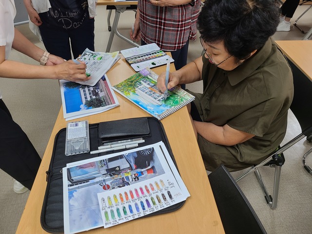 그러던 어느 날, 뜻밖의 만남이 우리에게 새로운 아이디어를 주었다. 성안동 동네기록관은 청주시웨딩허브센터를 거점 공간으로 운영하고 있는데 그중 2층을 전시실로 사용하고 있다. 그곳에서 ‘어반스케치’라는 단체의 작품을 만난 것이다.