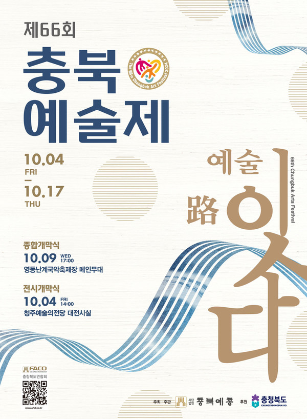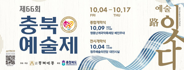 지역예술인과 충북도민의 소통의 장인 66회 충북예술제가 '예술路 잇다'를 주제로 오는 17일까지 11개 시·군 예총과 각 협회 30여 개의 행사를 선보이며 충북도 일원에서 펼쳐진다.