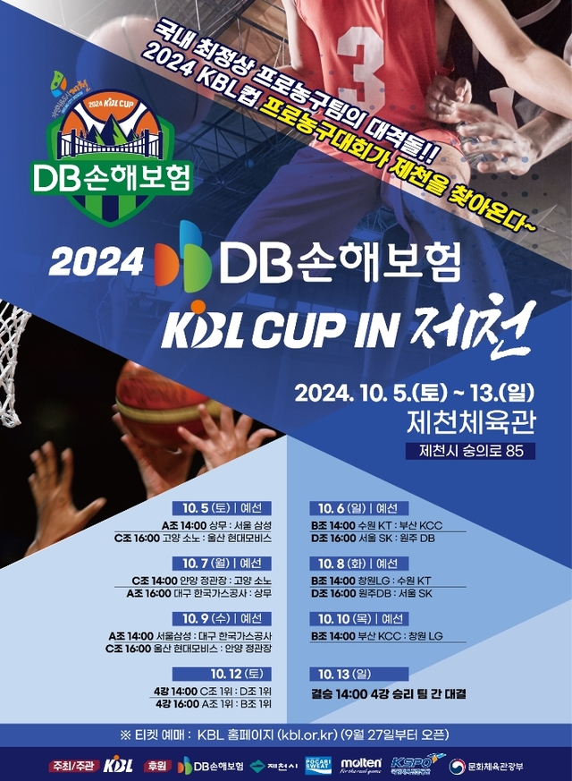 [동양일보 장승주 기자]국내 10개 프로농구팀과 상무팀이 출전하는 ‘2024 KBL 컵대회’가 오는 13일까지 제천실내체육관에서 열린다.