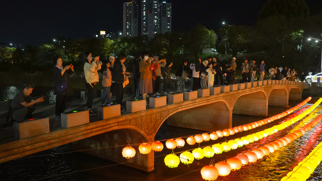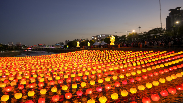 [동양일보 손상훈 기자]2024 무심천 직지유등문화제가 열린 지난 5일 충북 청주시 서원구 사직동 무심천체육공원에 설치한 유등이 무심천을 환히 밝히고 있다. 무심천 직지유등문화제는 조선시대 임진왜란 당시 육지전에서 첫 승전보를 울린 청주성 탈환 전투에서 순국한 승병과 백성들의 넋을 기리기 위해 1987년 시작됐다. 손상훈 기자 mjsh9370@dynews.co.kr