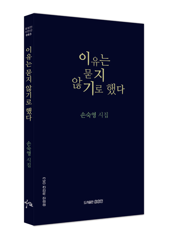 손숙영 시인의 시집 『이유는 묻지 않기로 했다』가 도서출판 상상인에서 출간됐다 이 시집은 1부 얼마간의 여백, 2부 녹아내리다 보면 끝 간 곳 어디쯤 닿겠지, 3부 겨우내 숨죽여 눕는 법을 익혔습니다, 4부 다시 안개에 가려도 등 총 4부로 구성됐다.