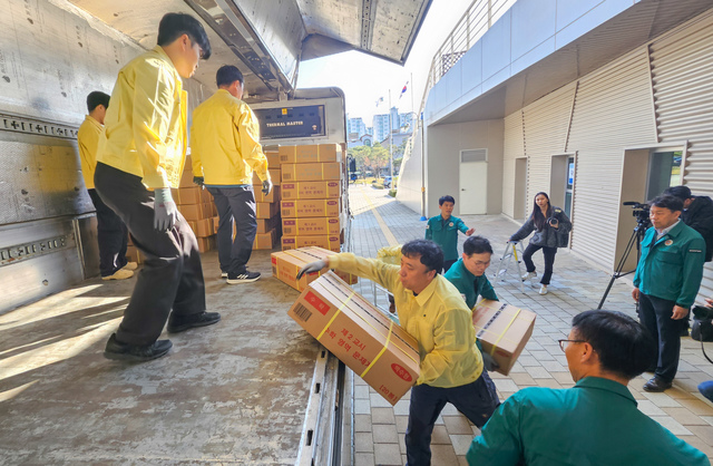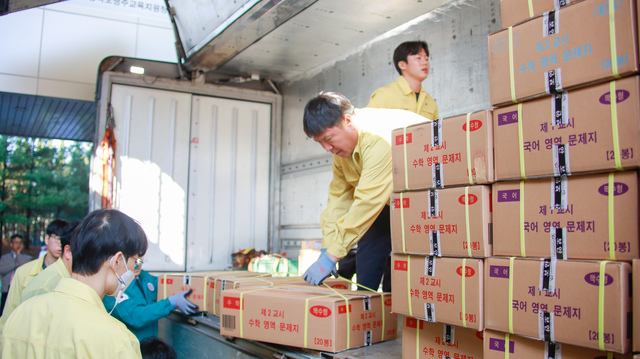 [동양일보 손상훈 기자]2025학년도 대학수학능력시험을 이틀 앞둔 12일 2시께 청주시 서원구 산남동 청주교육지원청에 수능 문제지와 답안지가 도착해 교육지원청 관계자들이 옮기고있다. 손상훈 기자 mjsh9370@dynews.co.kr
