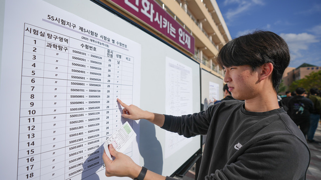 [동양일보 손상훈 기자]2025학년도 대학수학능력시험 예비소집일인 13일 청주시 서원구 미평동 세광고등학교에서 한 수험생이 수험번호로 시험장을 찾고 있다. 손상훈 기자 mjsh9370@dynews.co.kr