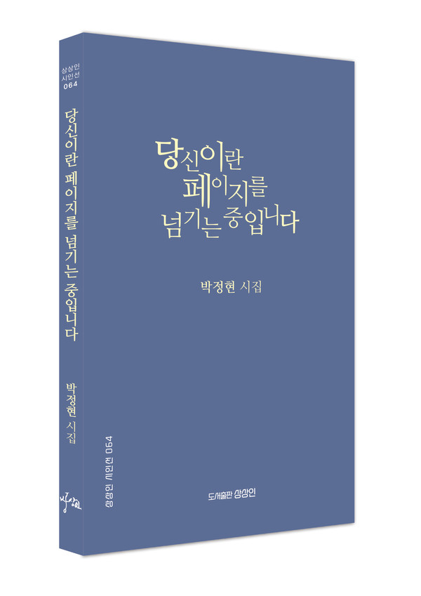 박정현 시인의 첫시집 당신이란 페이지를 넘기는 중입니다가 도서출판 상상인에서 출간됐다. 곡진한 전언 같은 이번 시집은 낮고 깊은 눈길로 세계를 응시하고 자신의 기억을 끌어올려 서정적 미학의 건축물을 부려놓는다.