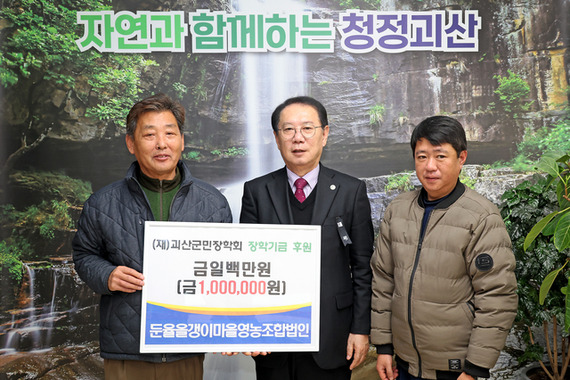[동양일보 임재업 기자]괴산군 둔율올갱이영농조합법인(대표 김영수)은 30일 (재)괴산군민장학회에 장학기금 100만 원을 기탁했다.