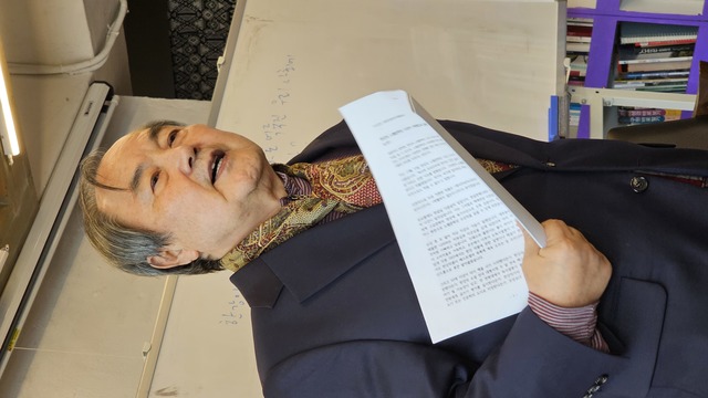 [동양일보 박현진 기자]찬바람이 매섭던 지난 12월 중순, 무심천 변의 한 작은 카페에서 열린 ‘한강 작가와 함께하기’ 토론회에서 기조강연에 나선 권희돈(77) 청주대 명예교수를 만났다. “인간의 잔인함에 대한 두려움을 글로써 산화시킨 한강 작가는 같은 땅, 같은 하늘 아래에서 벌어진 참혹한 상황을 보고 들으며 죽은 자가 산 사람을 도와줄 수 있는지, 과거가 현재를 낫게 만들 수 있는지를 고민함으로써, 이분법으로 갈라진 대한민국 국민 경계를 허물고, 전 세계인을 아름답고 수려한 한글의 세계로 초대했습니다.” 그는 한강 작가의 수상 소감 중 ‘언어는 우리를 잇는 실’이라는 구절을 인용하며, 문학의 기능이 교훈적, 쾌락적 기능 외에 최고의 기능으로 ‘치유의 기능’이 있다는 것으로 강연을 마무리했다. <편집자주>