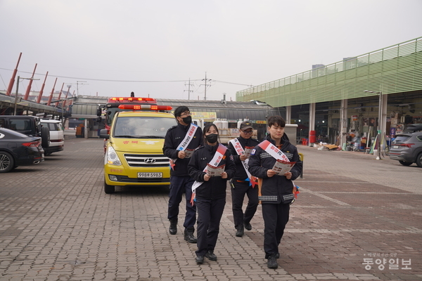 소방서는 차량 통행량이 많은 전통시장 일대에서 △소방차 출동로 확보 훈련 및 불법 주·정차 금지 안내문 배부 △소방차 길 터주기 국민 참여 △화재 예방수칙 홍보물 배부 △주택용 소방시설 설치 홍보 △화재 예방 캠페인 등의 활동을 펼쳤다