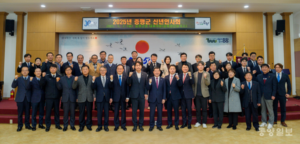 증평군은 7일 증평청년회의소(회장 김영제) 주관으로 군청 대회의실에서 이재영 조윤성 군의장 등 70여명이 참여한 가운데 ‘2025년 증평군 신년인사회’를 열고 새해의 희망과 비전을 공유하는 시간을 가졌다. / 증평군