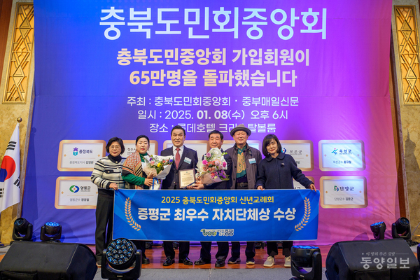 증평군이 충북도민중앙회(회장 김정구) 신년교례회에서 최우수 자치단체상을 수상했다.