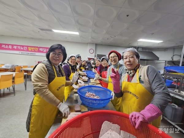 1월부터 시작된 이 사업은 30여 명의 자원봉사자들이 매주 수요일 모여 정성껏 조리한 반찬을 거동이 불편한 지역 내 저소득 재가 노인의 집까지 배달한다.