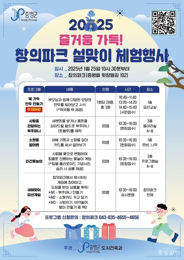 증평군이 설 연휴가 시작되는 25일 증평창의파크에서 설맞이 체험행사를 갖는다.