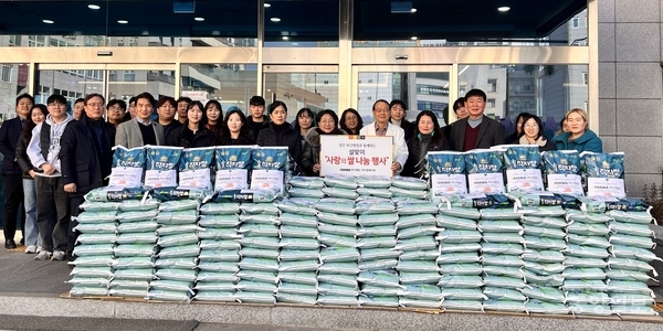 청주 한마음의료재단 하나병원(이사장 박중겸)이 23일 병원 본관 1층에서 설날을 맞이해 이웃들에게 온정 가득한 겨울을 보내길 바라는 마음으로 사랑의 쌀 나눔행사를 진행했다.