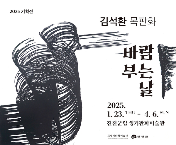 진천군립생거판화미술관이 오는 4월 6일까지 목판화가 김석환 선생의 기획전 ‘김석환 목판화, 바람 부는 날’을 선보인다.