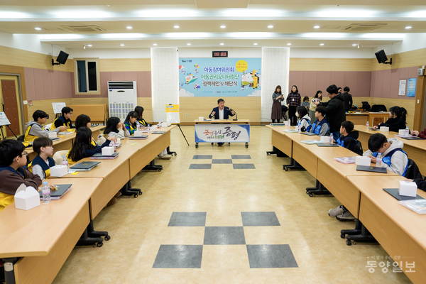 증평군은 아동들이 제안한 정책을 군정에 반영하기 위해 3일 대회의실에서 증평군 아동참여위원회·아동권리모니터링단 30명과 대화의 시간을 가졌다. / 증평군