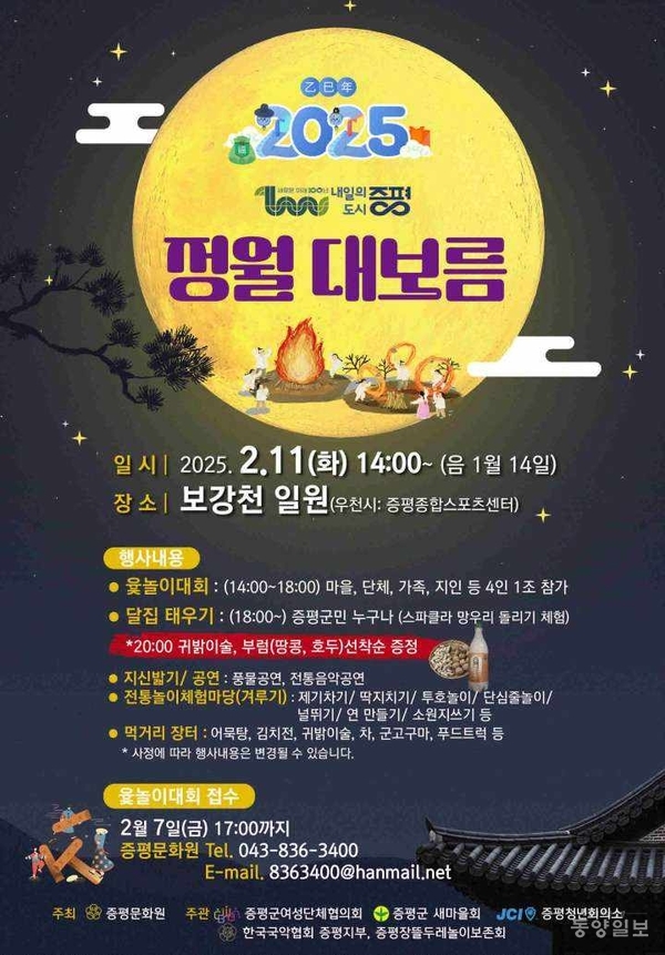 증평문화원이 주최하는 이번 행사는 전통 민속놀이와 다채로운 공연이 어우러진 자리로, 한 해의 건강과 풍요를 기원하는 시간으로 마련됐다.