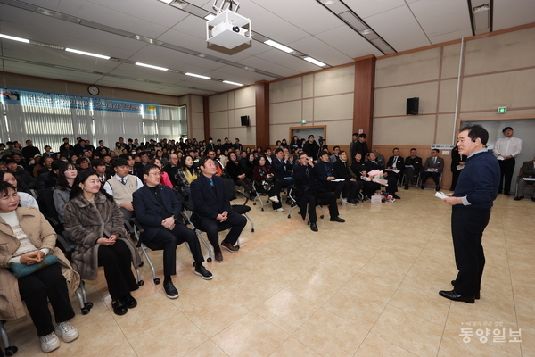 ‘진천군수와 함께하는 군민 공감 토크콘서트’가 6일 진천읍에서 100여명의 주민들이 참여한 가운데 열렸다. / 진천군