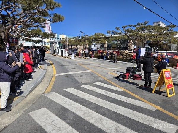 ▲ 진천읍 교성리에 건축중인 '풍림아이원 트리니움 아파트' 입주 예정자 70여 명은 24일 진천군청 정문에서 집회를 갖고 공사지연에 따른 ‘보상금’과 ‘입주지연에 따른 해결책 마련’ 등을 요구하고 있다. 이 아파트(2450가구)는 당초 입주예정일이 2023년 10월31일이었으나 2024년 6월, 2024년 10월, 올 상반기 등으로 연기됐다. 진천 김병학 기자