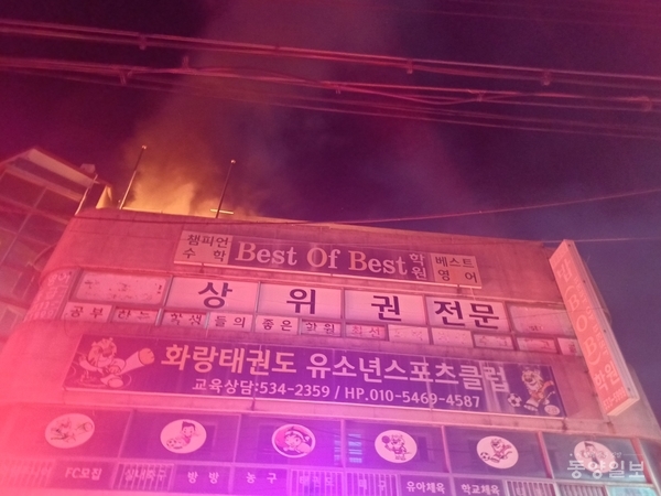 불은 건물 내부(40㎡)를 태워 소방서 추산 3000만원의 재산피해를 내고 40여분 만에 진화됐다.