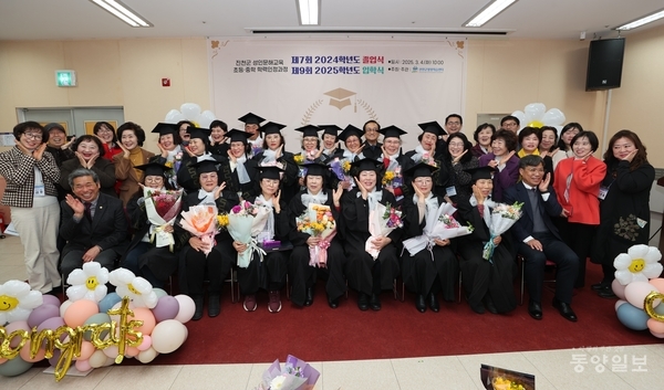 진천군은 4일 진천 군립도서관에서 성인문해교육 학력인정과정 졸업식과 입학식을 가졌다. / 진천군