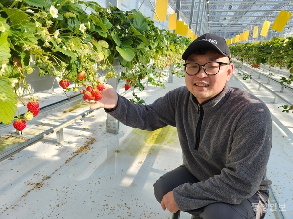 영동군 양산면 영동나들팜 최동원(42) 대표는 스마트농장에서‘설향’딸기를 재배하는 청년 농업인이다.