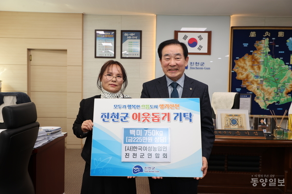 (사)한국 여성농업인 진천군연합회(회장 김순성)는 6일 진천군청을 방문해 진천군장애인복지관에 백미 750kg(225만원 상당)을 전달했다. / 진천군