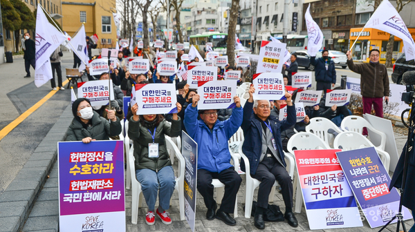 윤석열 대통령이 구금 52일 만에 구속취소가 결정된 지난 8일 여야단체가 청주시 상당구 충북도청 앞에서 규탄과 환영의 집회를 열었다. 손상훈 기자 mjsh9370@dynews.co.kr