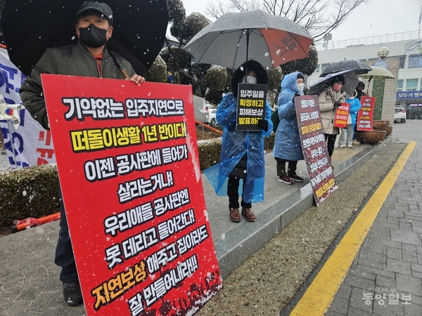 사전점검일이 도래했음에도 공사에 진척이 없자 입주예정자들은 지난 4일 집회를 열고 사전점검 재연기와 손해 보상안 마련을 촉구했다.