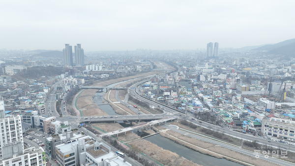 초미세먼지 농도가 ‘나쁨’으로 나타난 12일 청주시 서원구 모충동 서원대학교에서 바라본 청주도심이 미세먼지에 가려 희미하게 보이고 있다. 기상청은 지난 11일 고비사막과 내몽골고원에서 발원한 황사가 북서풍에 실려 국내로 유입 되 13일 전국적으로 영향을 줄 것으로 예보했다. 손상훈 기자 mjsh9370@dynews.co.kr