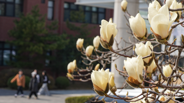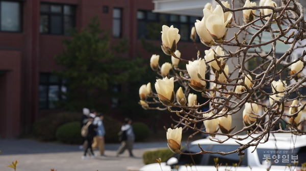 꽃샘추위가 지나간 23일 청주시 서원구 충북대학교 개신캠퍼스에 활짝 핀 목련이 봄의 시작을 알리고 있다. 손상훈 기자 mjsh9370@dynews.co.kr