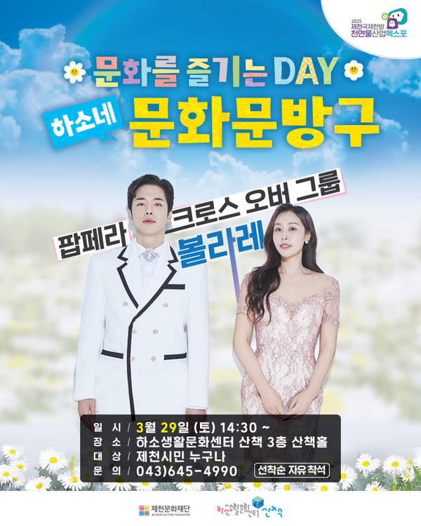 제천문화재단(이사장 김상수)은 오는 29일 토요일에 산책가자! ‘하소네 문화문방구’ 프로그램으로 팝페라 공연을 한다.