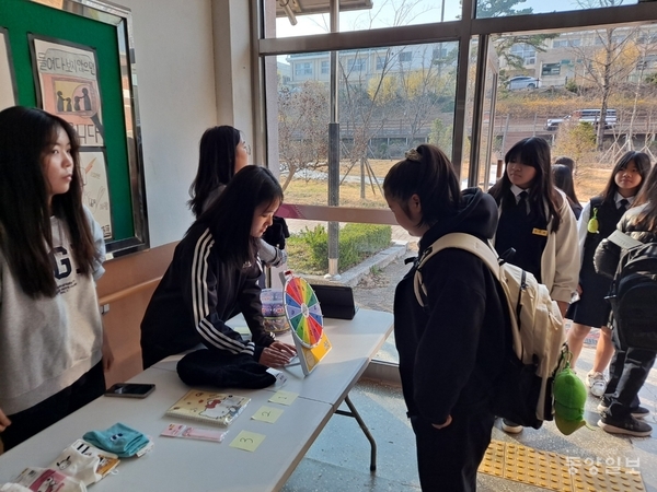 증평여중(교장 민현숙)은 1일 학생자치회의가 준비한 게임과 간식, 놀이 등 등교 맞이 행사인 ‘교복 입은 너를 칭찬해’를 운영했다. 괴산증평교육지원청