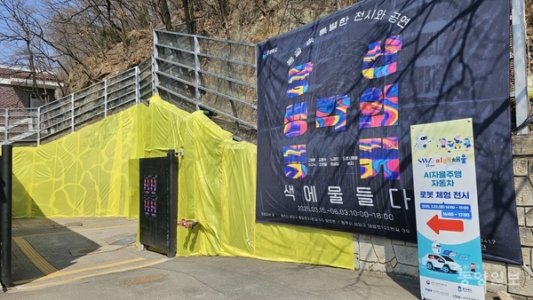 지난해 10월 처음 개관했을 때만 해도 국방색 얼룩무늬로 군사시설 냄새가 물씬 풍겼던 입구는 20여일의 임시휴관과 전시기획을 위한 휴지기를 지낸 후 노랑 봄옷을 입고 도민을 맞았다.