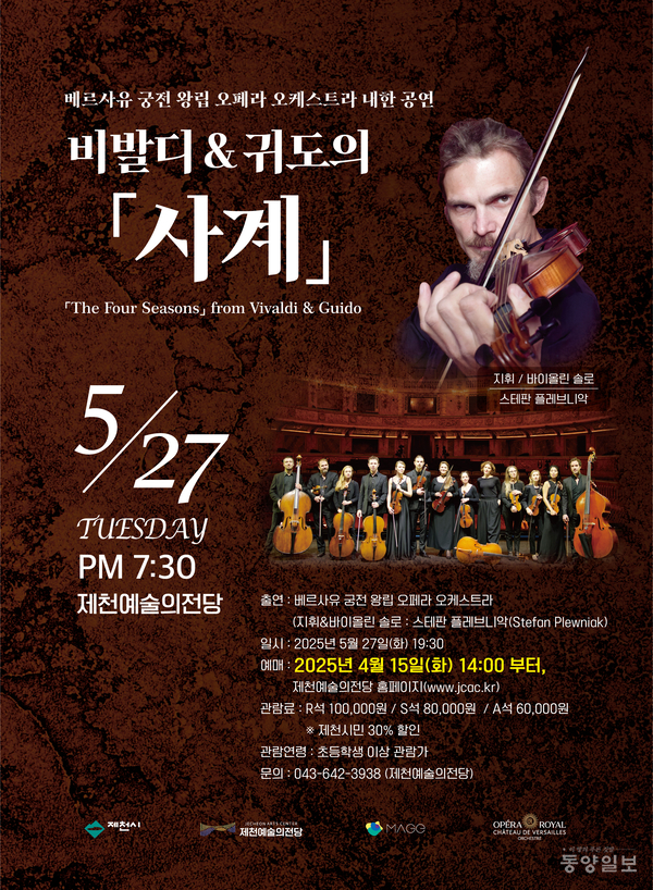 공연은 비발디 ‘사계’ 발표 300주년을 기념해 기획됐다. 바로크 음악의 거장 ‘비발디’와 동시대의 작곡가 ‘귀도’의 ‘사계’를 한 자리에서 감상할 수 있다.