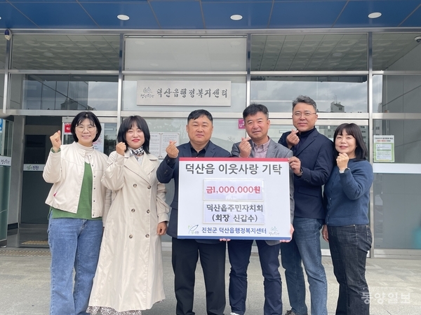 진천군 덕산읍 주민자치회(회장 신갑수)는 최근 발생한 영남지역 산불 피해로 어려움을 겪고 있는 이재민들을 돕기 위해 성금 100만원을 사회복지공동모금회에 전달했다. 진천군