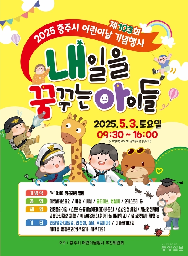 충주시가 5월 3일 탄금공원에서 103회 어린이날 행사를 연다.