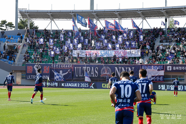 충북청주FC는 지난 4일 청주종합경기장에서 열린 '하나은행 K리그2 2025 10라운드' 수원삼성블루윙즈와의 경기에서 3대 3 무승부를 기록했다.