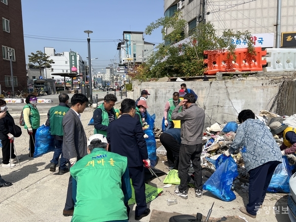 진천읍 새마을지도자‧부녀회 회원 50여 명은 8일 백곡천 둔치에서 방치된 쓰레기를 수거하는 국토대청결 운동을 실시했다. 진천군