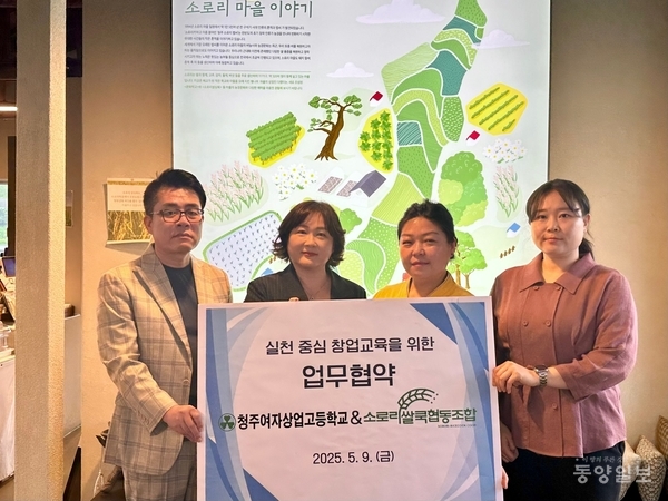 청주여상(교장 김현희)이 지난 9일 소로리쌀쿡협동조합과 업무협약을 체결하고 지역 공동체 활성화를 위한 실천 중심 창업교육을 본격 추진한다.