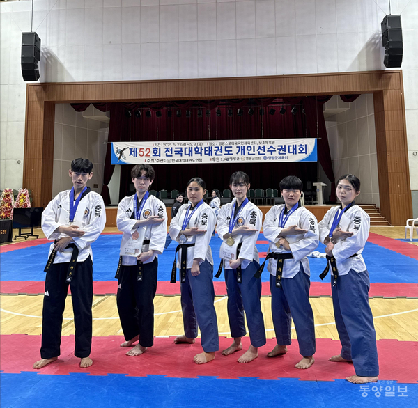 충북보과대(총장 박용석) 태권도외교과가 52회 전국대학태권도개인선수권대회에서 금메달 10개를 포함한 총 26개의 메달을 획득했다.