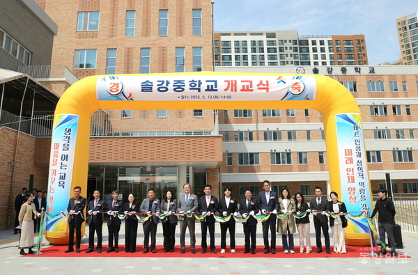 2023년 6월 21일 착공해 지난 2월 17일 준공된 솔강중은 총사업비 362억원이 투입됐다.