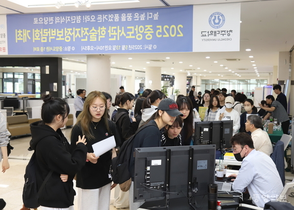 청주대(총장 김윤배)가 13일 중앙도서관에서 교직원과 학부, 대학원생의 학술연구 활동 지원과 전자정보 자료 활용 극대화를 위해 ‘2025 학술전자정보박람회’를 진행했다.