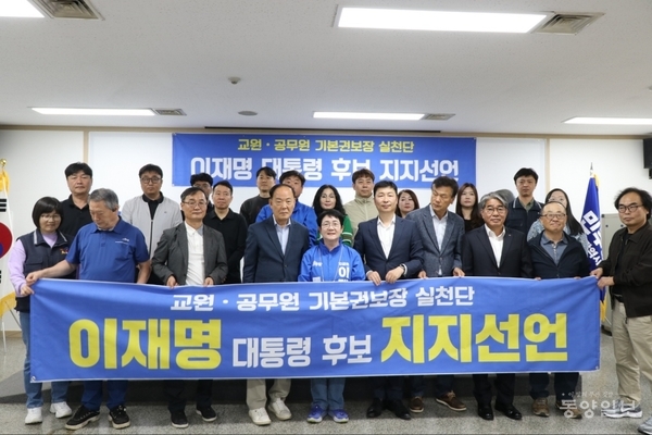 한국노총 산하 교원.공무원 기본권보장 실천단 대전지역본부는 19일 더불어민주당 이재명 대선후보에 대해 지지를 선언했다.