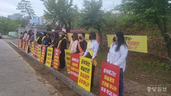 이들은 주장은 통합산출로 성적을 정했던 것이 음악·무용과와의 협의 후 11일 만에 분리산출로 변경됐다는 것이었다. 따라서 음악·무용과 학생들보다 상대적으로 성적이 높은 미술과 학생들이 손해를 입게 됐다는 것이었다.