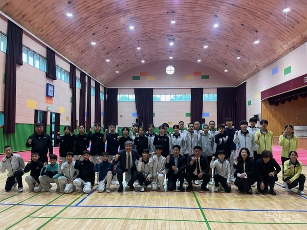 충북도의회 교육위원회가 19일 서원중 태권도부를 방문해 54회 전국소년체육대회에 출전하는 선수들을 격려했다.