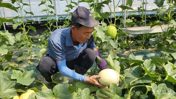 그는 올해도 다른 농가들보다 20여일 빠른 지난 5일부터 멜론 수확에 들어갔다. 일반 농가는 5월말부터 6월말까지 한달간 수확한다.