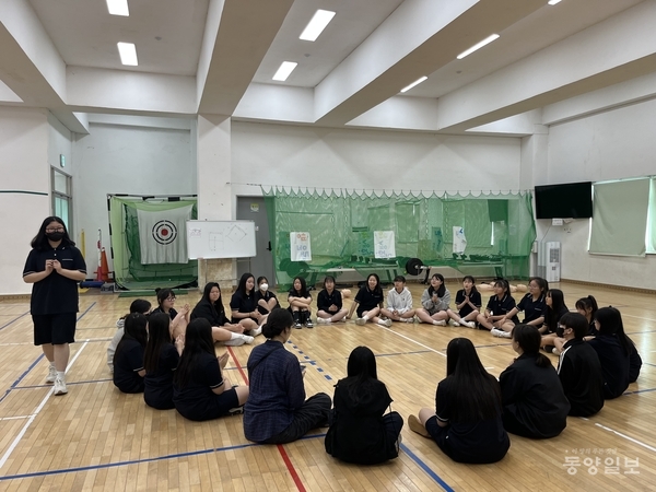 증평여중(교장 민현숙)이 22일 하교 후 1학년 학생과 교사가 참여해 공동체의식을 기르고 학교생활을 긍정적으로 경험하는 ‘학교 정원 캠프 체험 프로그램’을 운영했다. 괴산증평교육지원청