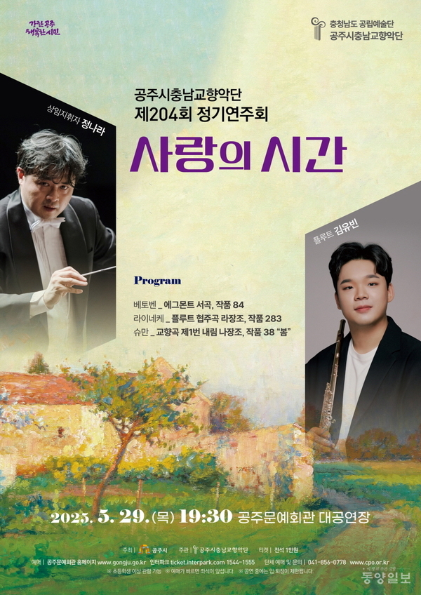 공연 프로그램은 △베토벤의 ‘에그몬트 서곡’ △라이네케의 ‘플루트 협주곡’ △슈만의 ‘교향곡 제1번’으로 구성돼 서정성과 역동성이 어우러진 고전 명곡들의 깊은 울림을 선사할 예정이다.