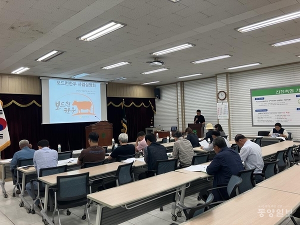 진천축협(조합장 박승서)은 28일 축협대회의실에서 기존 한우 암소 브랜드와 차별화된 미경산우(출산경험이 없는 암소)를 생산해 명품한우브랜드로 육성하기 위한 ‘보드런한우’ 브랜드로 가입한 농가 20여명이 참석한 가운데 사업설명회를 가졌다.