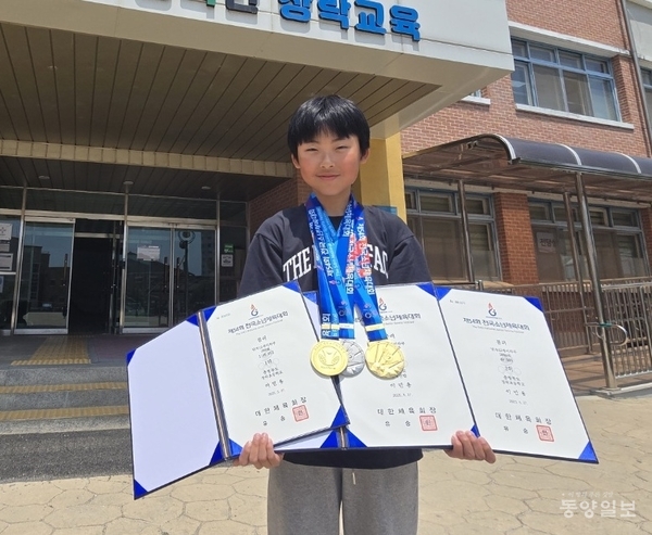 이 학생은 이번 대회에서 1000m 개인전 금메달, 3000m 계주 단체전 금메달, 500m+D 종목 은메달 등 모두 3개의 메달을 목에 걸었다.
