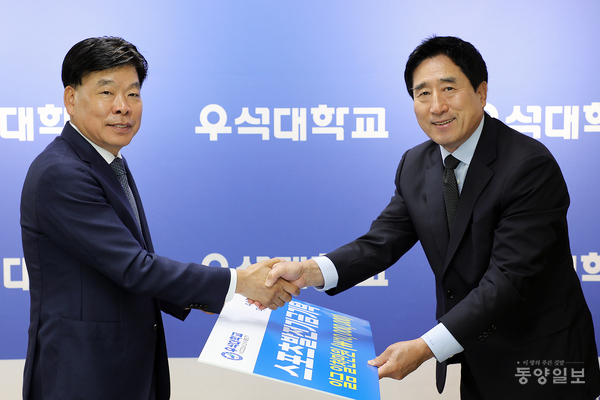 장수정 ㈜수정케미칼 대표이사는 28일 우석대 진천캠퍼스를 찾아 스포츠단 발전을 위한 발전기금 1000만원을 기탁했다. 우석대